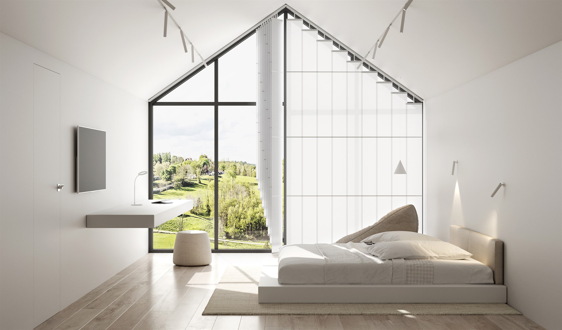 Thanks to the use of a counterbalance solution, the movable curtains can be easily moved across the entire width, even with large dimensions.