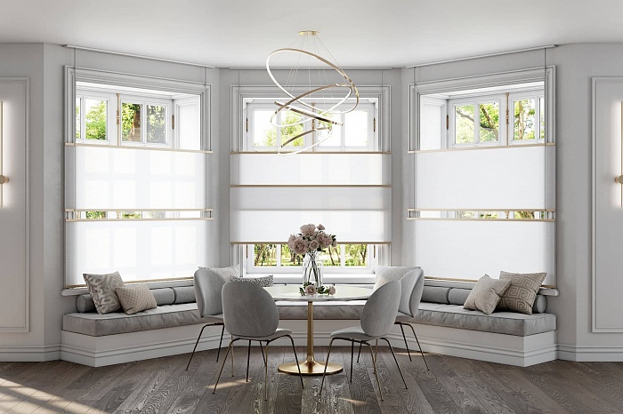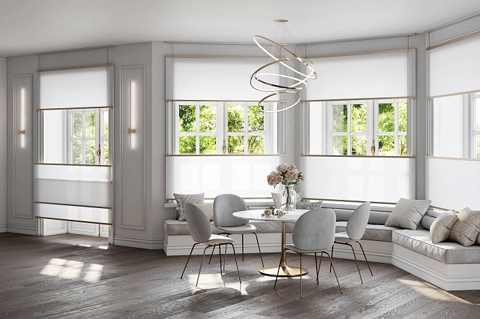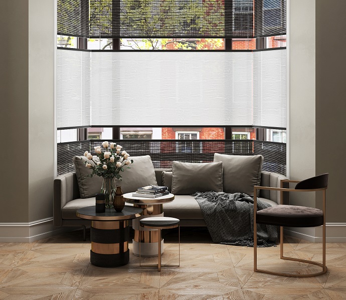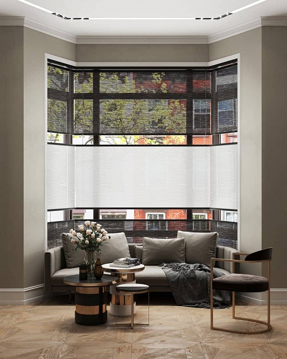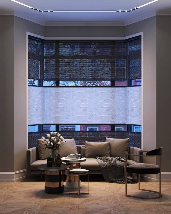 Innovative screens with various textures and light transmission qualities will perfectly fit into the impeccable geometry of your bay window and fulfill the room with warmth and comfort. With high-tech Wood & Washi solutions the use of the window space will be as functional as possible. If necessary you can adjust the level of illumination or gently control the light flux to create a special atmosphere in the room. Our friendly team will be glad to help you choose the best solution for a bay window of any complexity and emphasize your interior’s uniqueness.