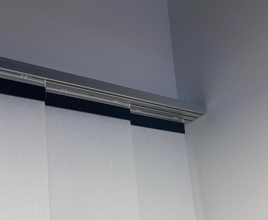 At the top, the panel screens are fitted with a Velcro strip, which in turn is attached to the carriage. The carriage is securely connected to the track. The tracks have a maximum length of 6 meters, and they can be connected to each other if desired. Tracks have 2 to 5 working channels. By combining the tracks together, the number of channels can be increased.